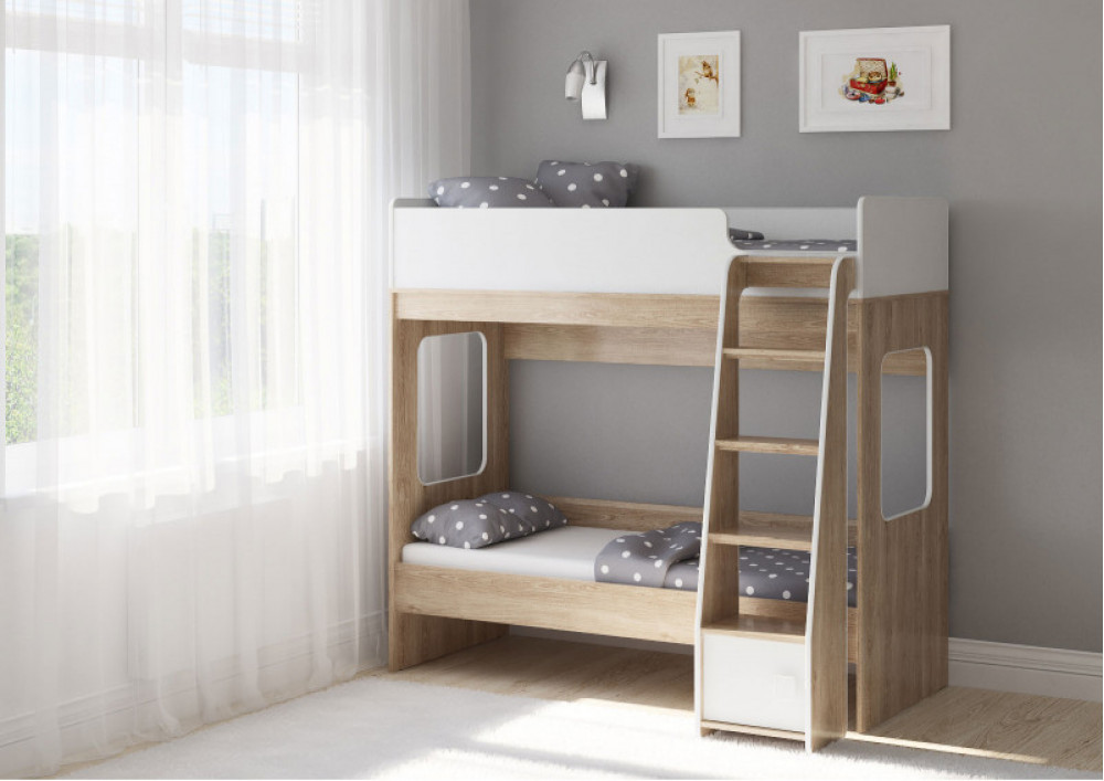 Классическая детская двухъярусная кровать с двумя параллельными спальными местами размером 1750х750.